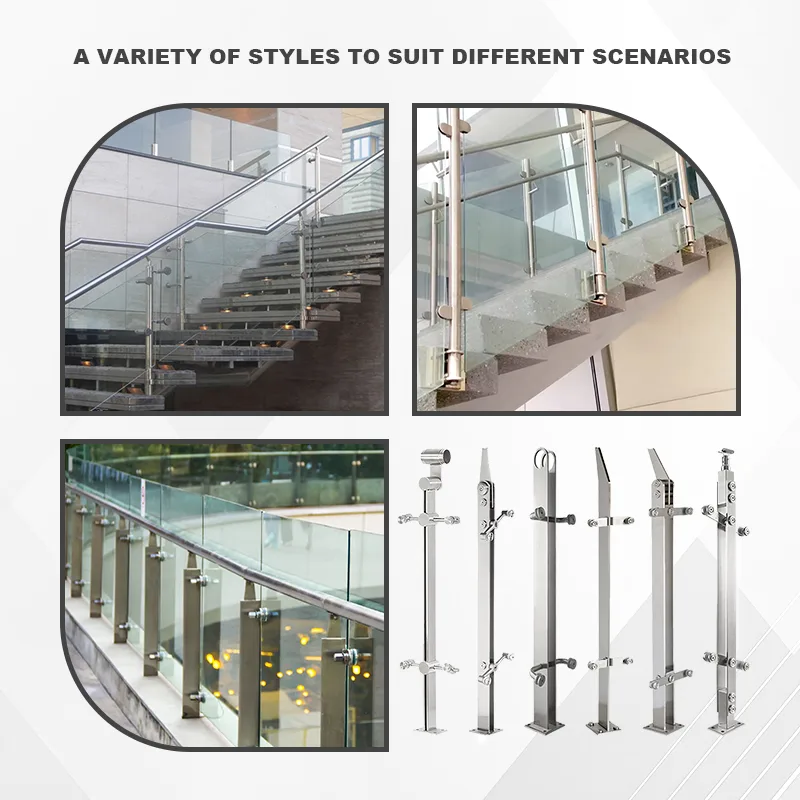 - Stainless steel double-sided glass clip column, suitable for stairs, guardrails, balconies, indoor and outdoor scenes.