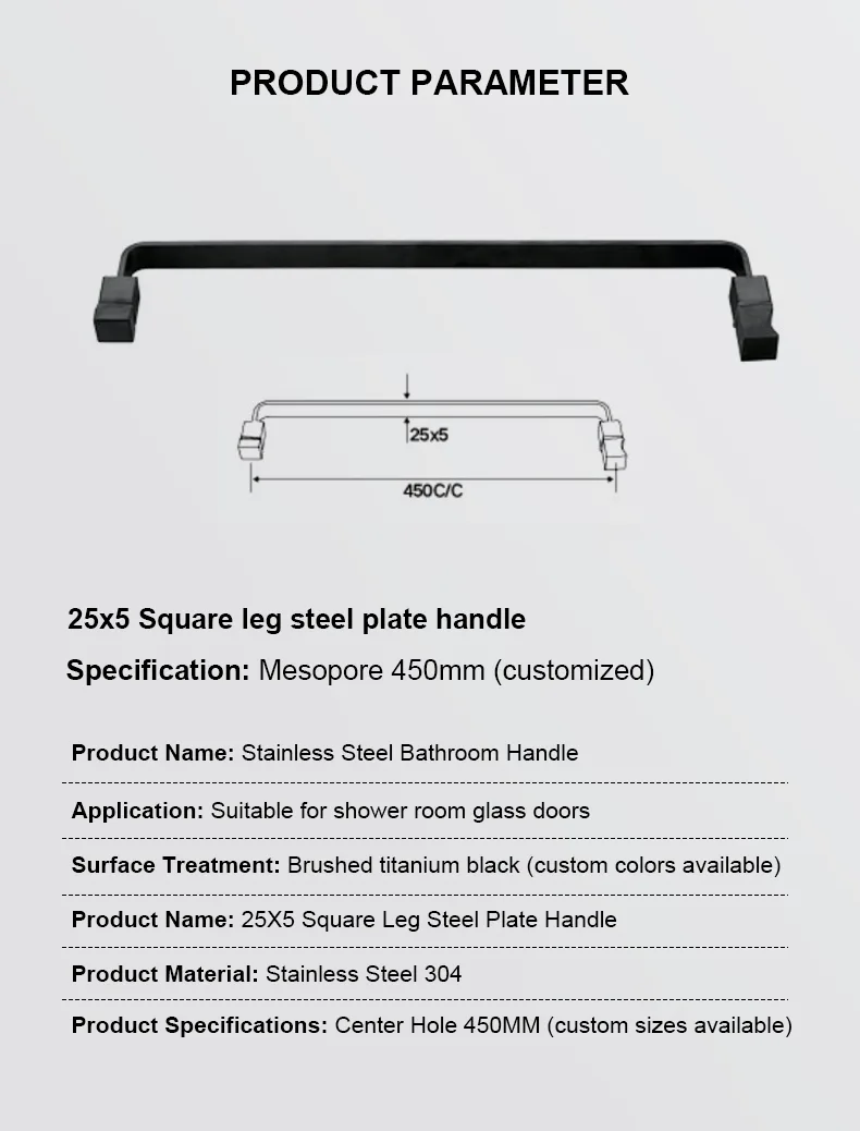 Stainless Steel Glass Door Hardware furniture Single Side Black Pull Handle